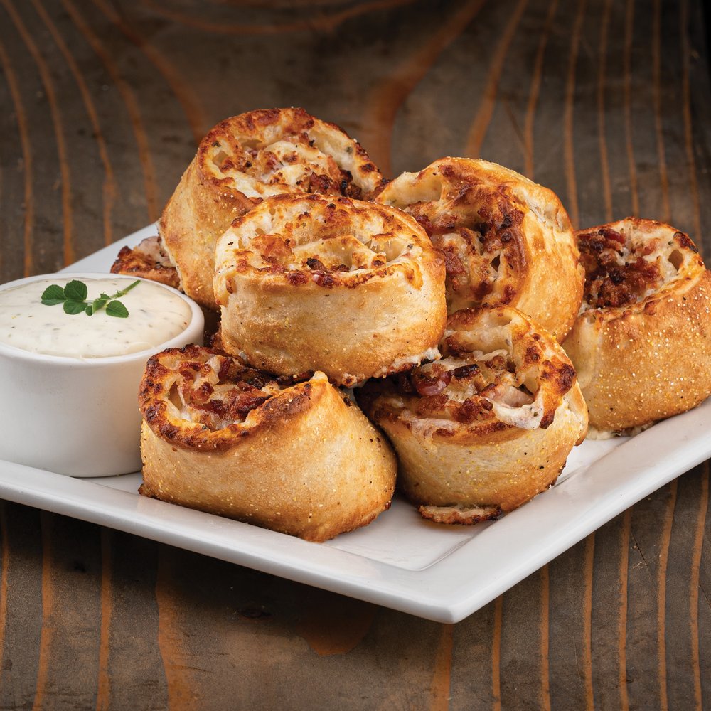 Our Signature Creamy White Garlic Sauce, Mozzarella Cheese, Rosemary Potatoes, Applewood-Smoked Bacon, topped with Green Onions, Fresh Roma Tomatoes, and Cheddar Cheese.